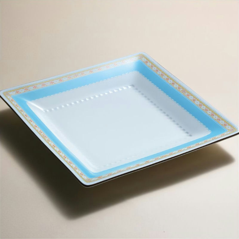 清涼なターコイズブルーに、小花をまとう菱文様を組み合わせた和テイストの食器です。