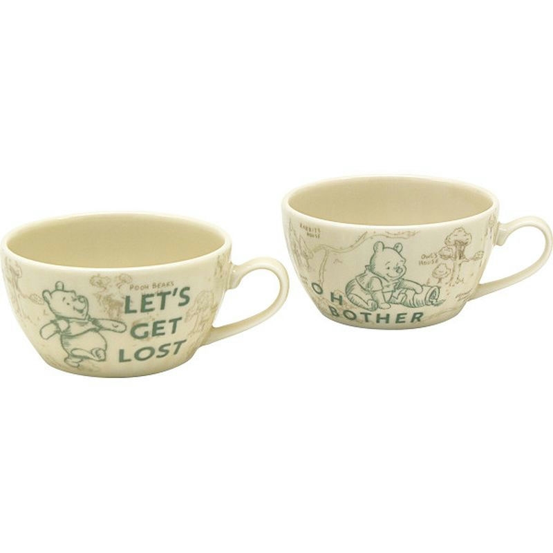 美しい100エーカーの森の地図を背景に、プーさんの暮らしがシンプルに描かれた軽量テーブルウェア。形状にはリズミカルなレリーフが付いたすっきりモダンな印象がもてそう。