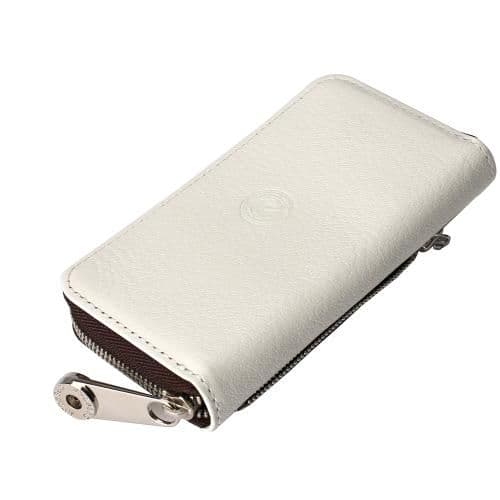 「JETTER」レザーグッズコレクションのキーケース。上質なゴート革(山羊革)を使ったホワイトレザーと内装のダークブラウンレザーのコントラストが美しいアイテムです。ゴート革は、しなやかさでありながら表面強度が高く、汚れにも強いので日常使いに最適です。手持ちでしっくりくるスマートな縦型シルエットで、4本の鍵を付けられるキーフックを装備。内側に便利なカードポケットも付いています。男性女性どちらへのプレゼントとしてもおすすめです。