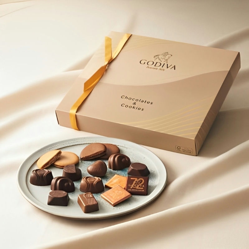 選び抜かれたチョコレートとスクエアタイプのシンプルなカレ、チョコレートをサンドしたラングドシャクッキーなど、ゴディバのバラエティ豊かな商品を一度に楽しめる詰め合わせ。