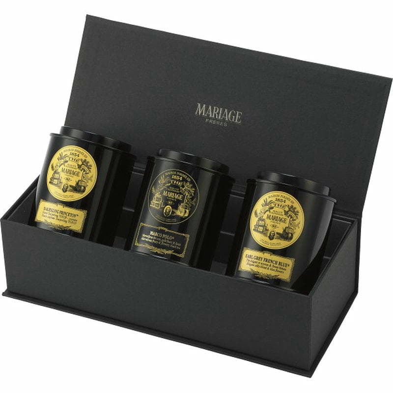マリアージュ フレールの代名詞である、甘い花とフルーツが香る「マルコ ポーロ」と青いブルーエの花が美しいフレンチタッチのアールグレイ、春摘みダージリンのオリジナルブレンド「プリンストン」が入った贅沢な詰め合わせです。