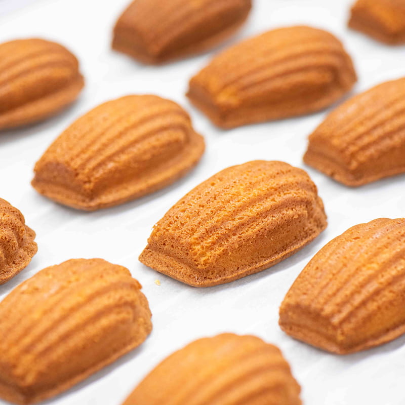 しっとりなめらかな口当たりと、口の中に広がる上品な甘さが自慢のマドレーヌです。