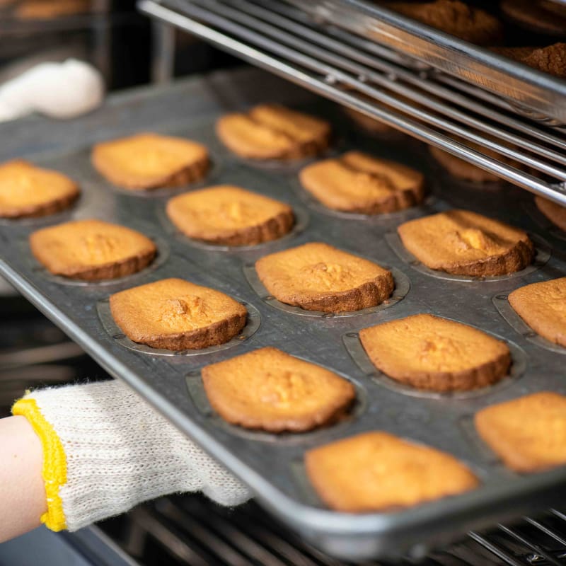 混ぜ方にや焼き加減にもとことんこだわり、冷めても美味しいしっとり・ふんわり食感を実現しました。