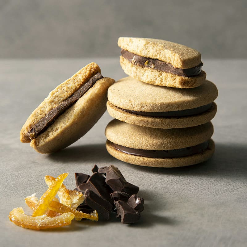 さっくり食感のクッキーでサンドしたチョコレートは、山椒や梅がアクセントになった大人なフレーバー。