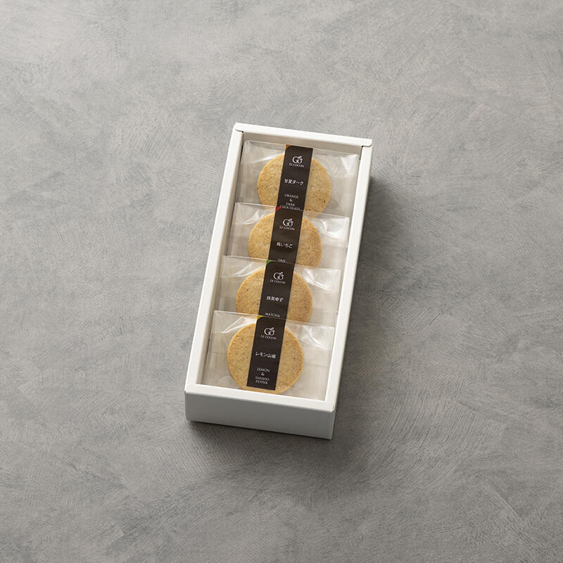 内容量:ショコラサンド(レモン山椒・梅いちご・甘夏ダーク・抹茶ゆず)×各1