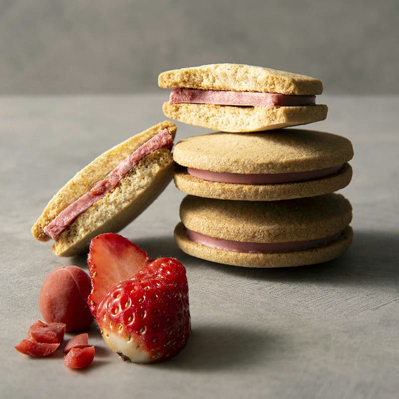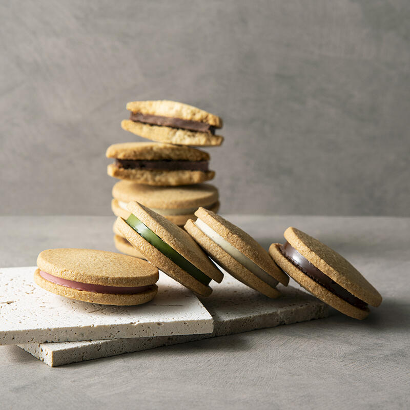 「梅いちご」「抹茶ゆず」など個性ある味わいのチョコレートをシンプルなクッキーでサンドしました。