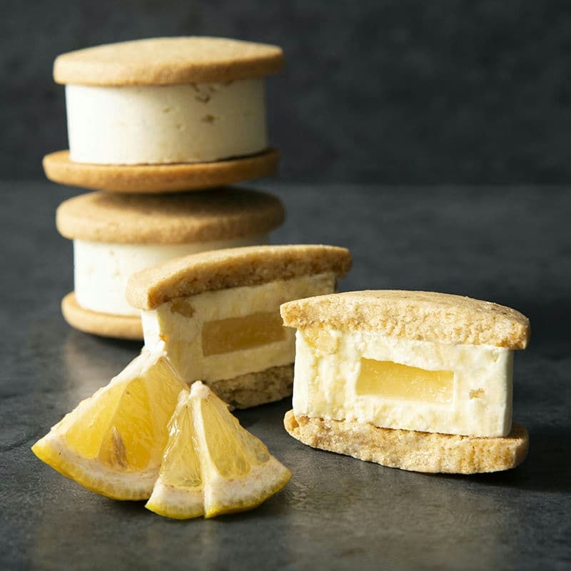 瀬戸内レモンのピールが入ったバタークリームの中心には、ベルガモットのジュレ。程よい酸味で後味が爽やかなバターサンドです。