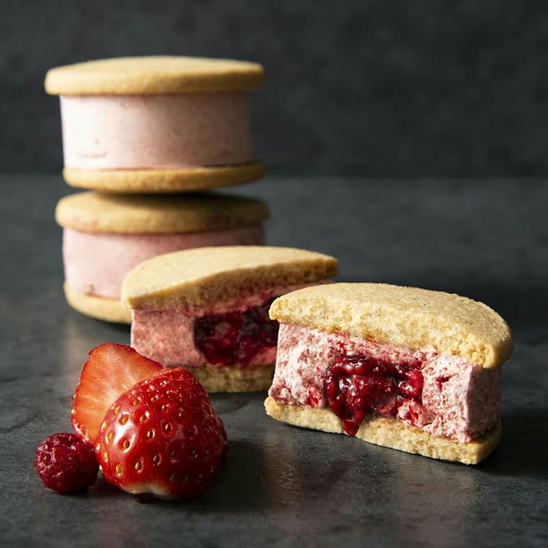 いちご×クランベリーのバタークリームに、フランボワーズのジュレが隠れています。甘酸っぱく、華やかなバターサンドです。