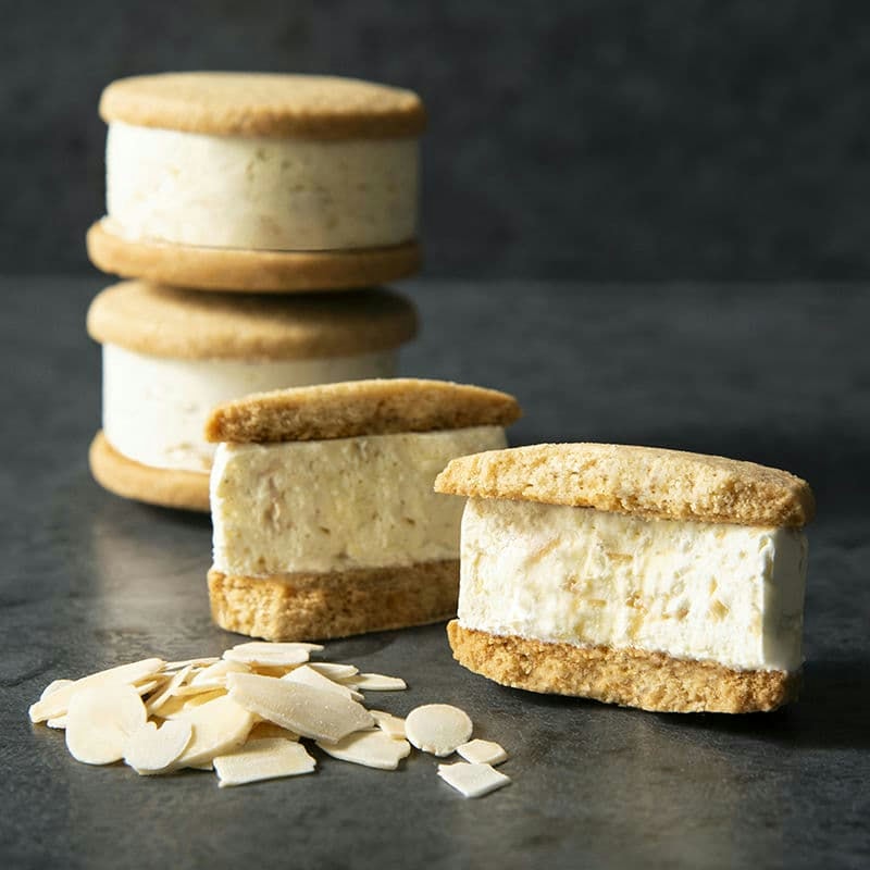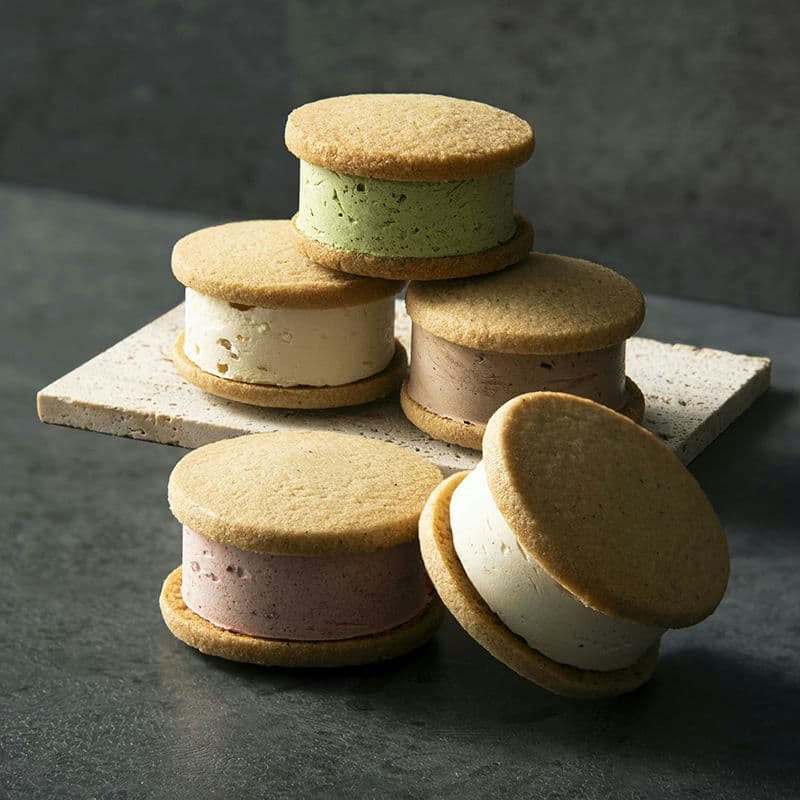可能なかぎり空気を含ませた軽い口あたりのクリームをさっくり食感のサブレでサンドしました。
