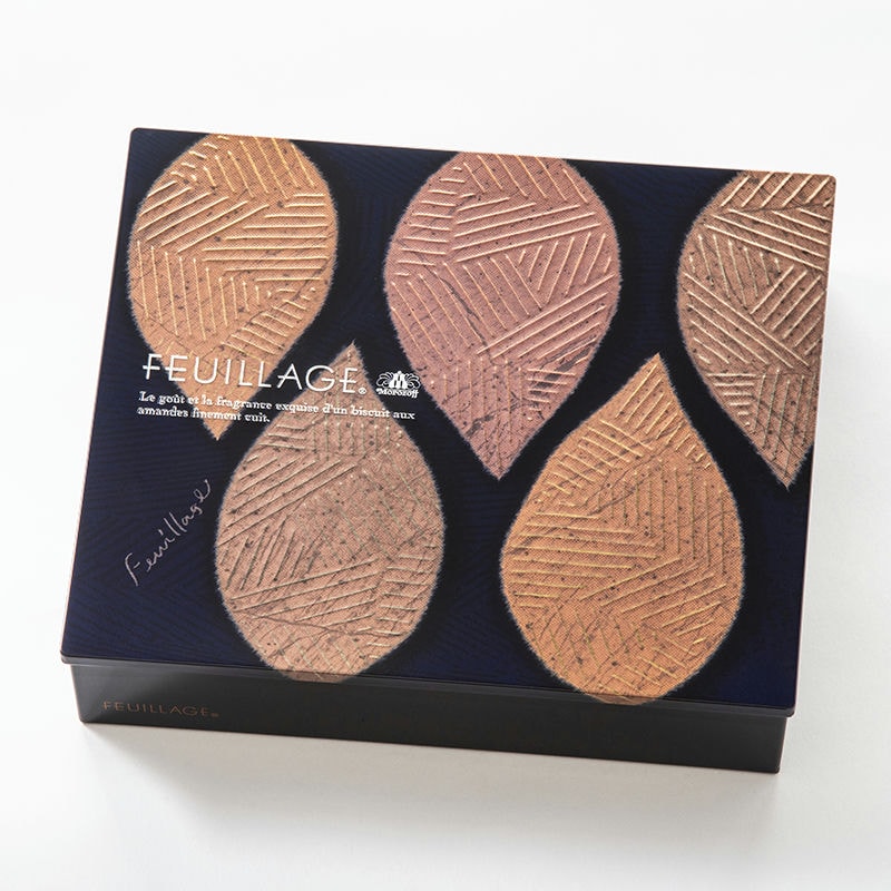 「ファヤージュ=木の葉」の名にちなんだ、葉っぱモチーフのデザイン。黒を基調にしたシックな装いで、お礼やお返しなど、贈るシーンを選びません。
