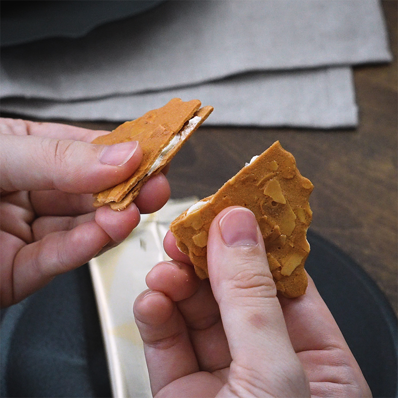 パリッとした軽やかな食感に、ナッツの香ばしさとチョコレートのやさしい甘さが広がります。