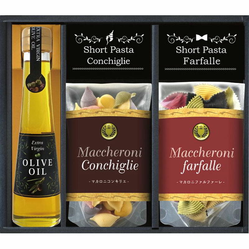 エクストラバージンオリーブオイル100g×1、カラーパスタ(コンキリエ60g・ファルファーレ40g×各1)