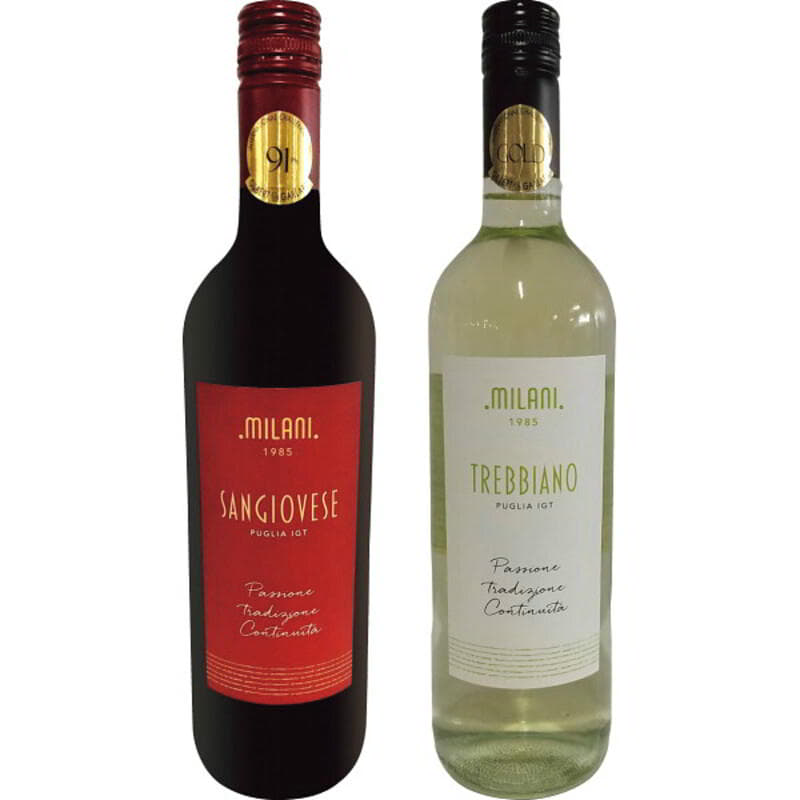 ミラーニ・サンジョヴェーゼ・プーリア(赤・ミディアムボディ・イタリア)、ミラーニ・トレッビアーノ・プーリア(白・辛口・イタリア)各750ml