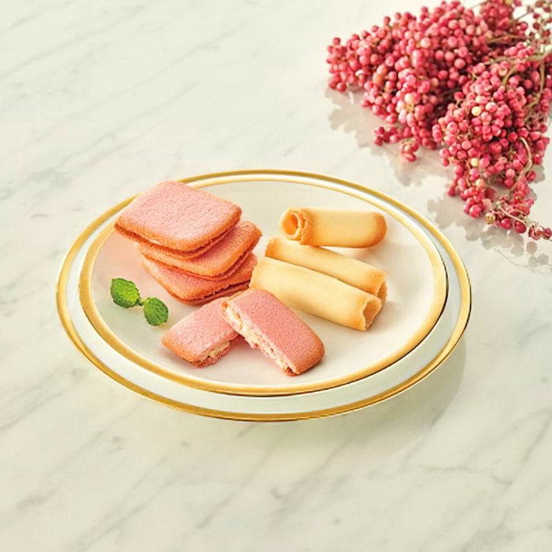 サンドタイプのクッキーとロールタイプのクッキー2種類の味が楽しめる詰合せ。あまおういちごは春限定の風味です。※包装済み商品です。