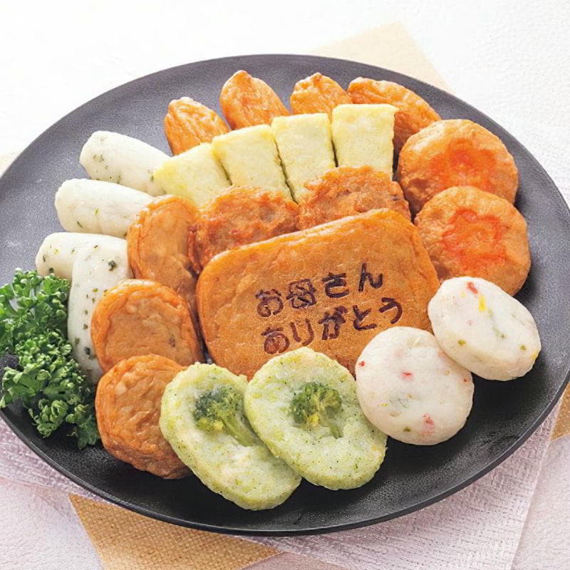 「お母さんありがとう」のメッセージ入りさつま揚げと、母の日専用化粧箱でお母さんに感謝を届けます。
