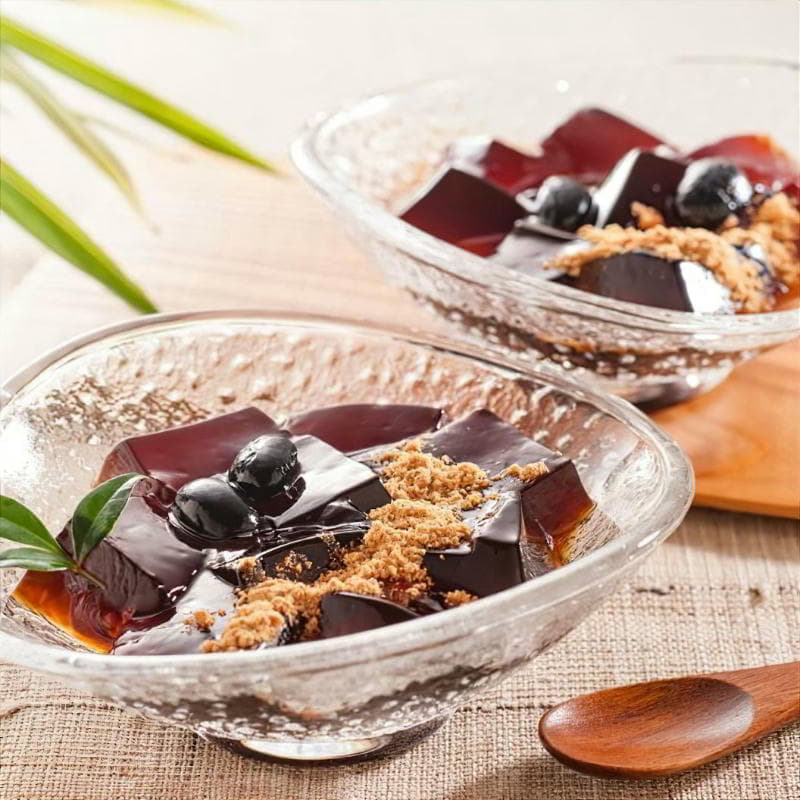 つるんとした食感に、ほんのり広がる黒蜜のやさしい甘さ。北海道産黒豆を使用し、ひと口ごとに上品な味わいが広がる黒蜜わらび餅です。