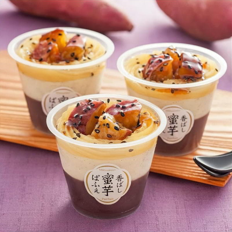 甘くねっとりとした「紅はるか」の焼き芋を使った、芋好きにはたまらないスイーツ。紅はるかの角切りとペーストの下には、滑らかな芋プリン、そして上品な甘さの餡の3層仕立て。みたらしソースが芋の香ばしい風味をさらに引き立てます。