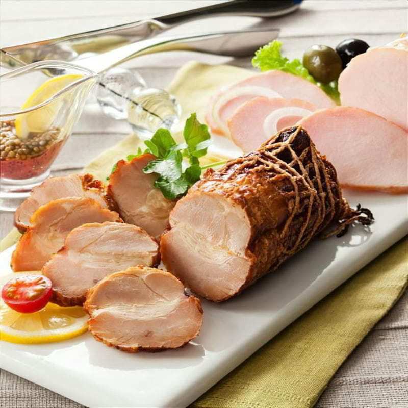 山桜のチップでスモークしたロースハムは、香り高くまろやかな味わい。