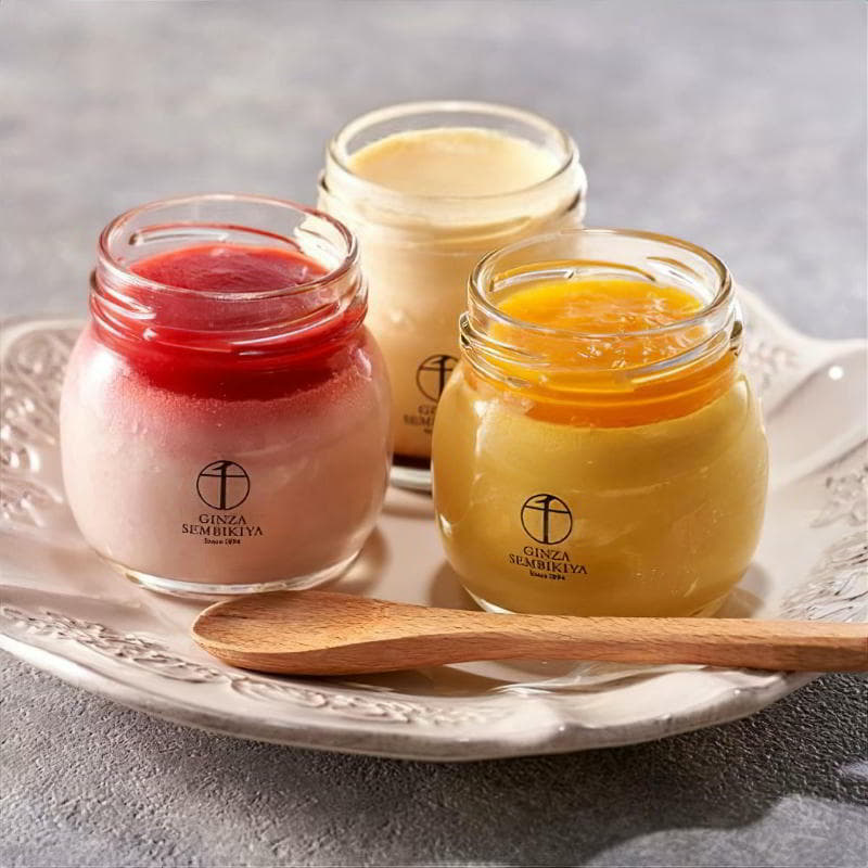 果物の老舗「銀座千疋屋」がお届けする、果実の風味豊かなプリン詰合せです。