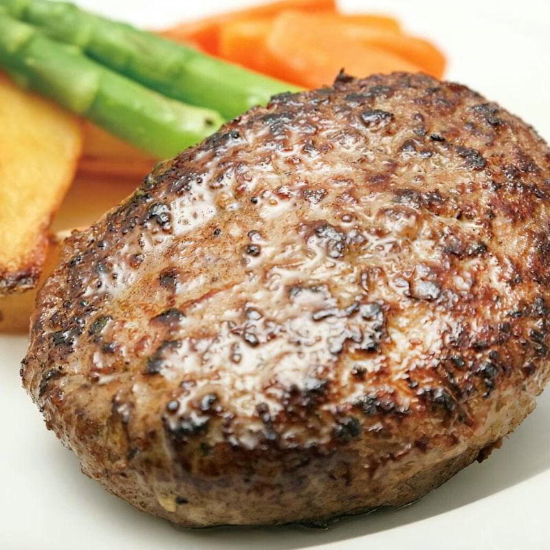 牛肉100%のハンバーグに細かく刻んだセロリやパセリを入れ、ブラックペッパーの風味を効かせました。香味野菜の甘みやほのかな香り、ブラックペッパーの刺激が食欲をそそります。香味野菜が苦手…という方でも食べられる、ソース不要のジューシーなハンバーグです。