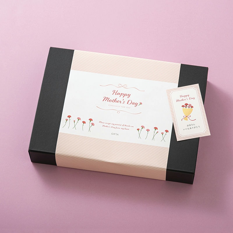 カーネーションをデザインした上品な掛け紙で、母の日の特別感を演出。感謝の気持ちを伝えます。