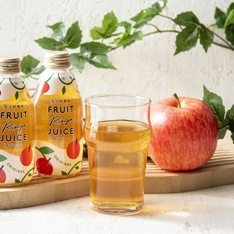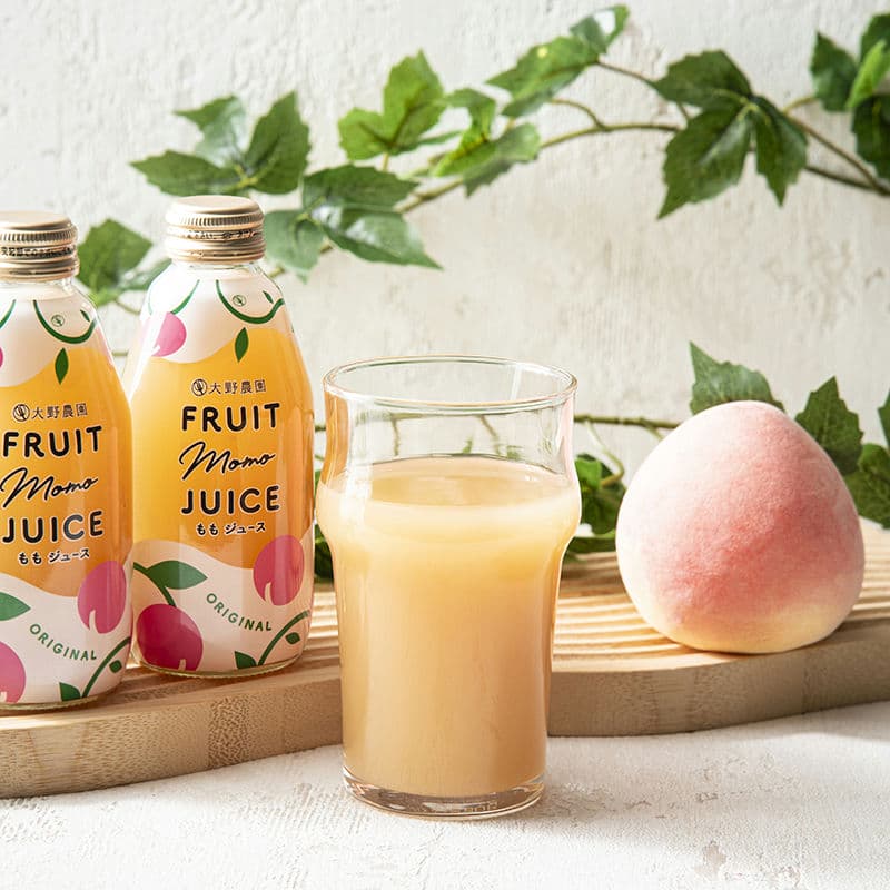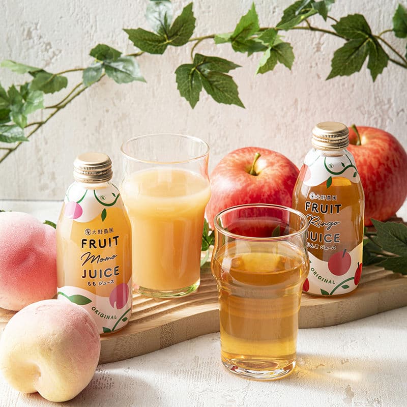 大野農園で収穫した、りんごとももを使った果実ジュースです。