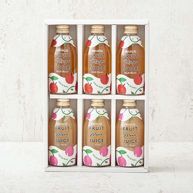 りんごジュースとももジュースを詰め合わせたセットは、当店だけの限定品です。