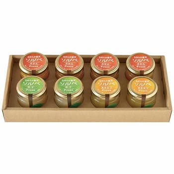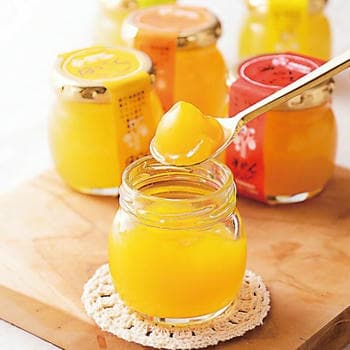 原材料:清水白桃【白桃シラップ漬(白桃、砂糖)(国内製造)、砂糖、白桃濃縮果汁、白桃ピューレ、レモン果汁/ゲル化剤(増粘多糖類)、V.C、pH調整剤、香料、酸味料、(一部にももを含む)】、瀬戸内レモン【砂糖(国内製造)、レモン果汁、レモンシラップ漬(レモン、砂糖)/ゲル化剤(増粘多糖類)、香料、pH調整剤】、温州みかん【温州みかんシラップ漬(温州みかん、温州みかん果汁、砂糖)(国内製造)、温州みかん果汁、砂糖、温州みかん濃縮果汁、レモン果汁/ゲル化剤(増粘多糖類)、香料、酸味料】