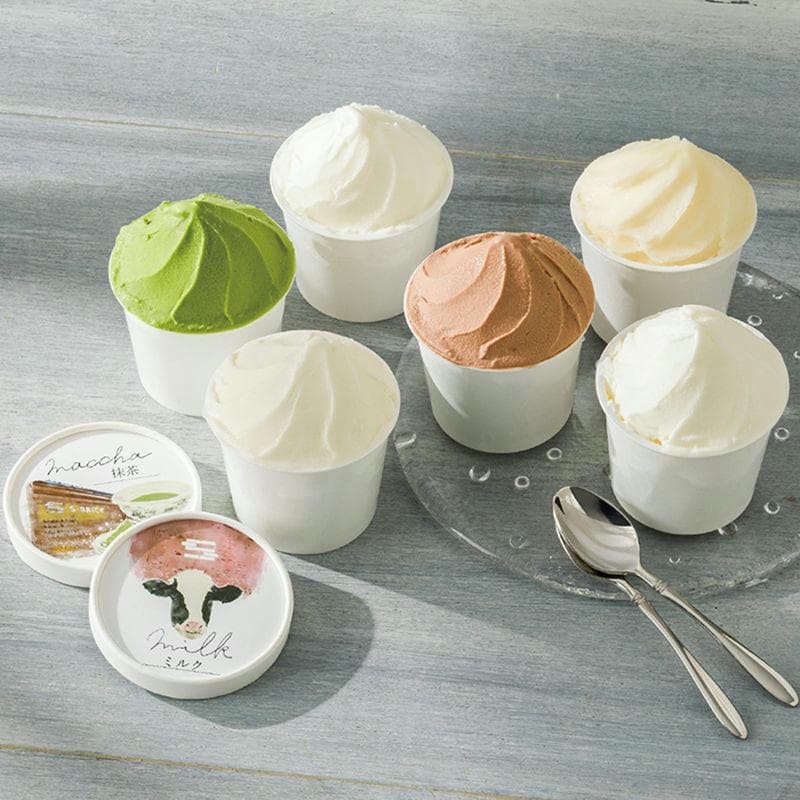 現品・内容・サイズ・材質: ジェラート100ml(濃厚ミルク・おのころ塩ミルク・抹茶・クリームチーズ・チョコ・なるとオレンジ各1個)