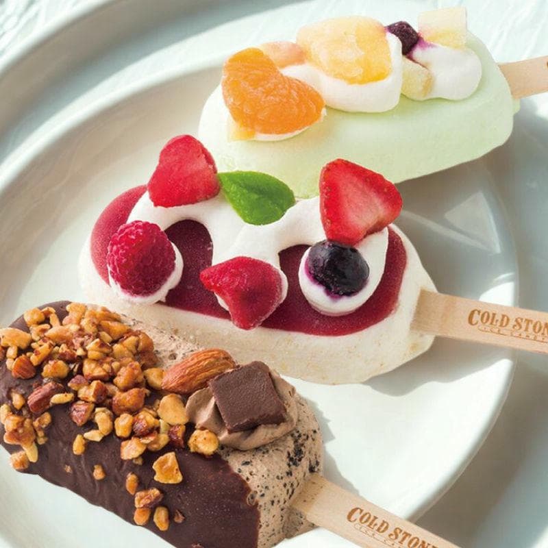 お店の味わいをご家庭でも手軽に楽しめる華やかなアイスキャンディにしました。メロンクリームソーダをアイスバーにしたクリーミーメロンバスケットやフルーツをたっぷり使用したトロピカルバナナチョコレートなど、ゴツゴツとしたトッピングの食感と濃厚な味わいのアイスクリームをお楽しみください!
