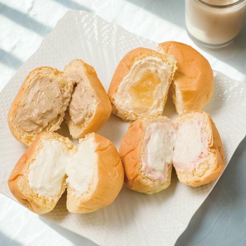 現品・内容・サイズ・材質: ふるさとくりーむパン(とろける北海道チーズケーキ味・とろける福岡あまおう苺ミルク・とろける瀬戸内レモン・とろける沖縄黒糖各2個)