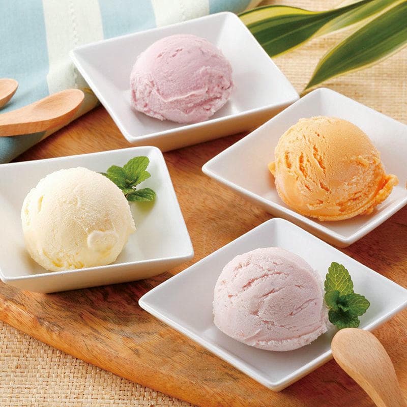 北海道牛乳を使用したアイスセット。人気のバニラに赤肉・青肉メロンやハスカップ、ストロベリー、クリームチーズなどバラエティ豊かな味をお楽しみ頂けます。