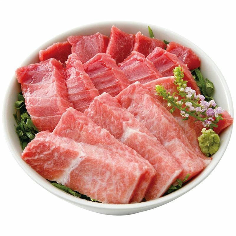 たっぷりと脂ののった養殖本鮪の詰め合わせです。赤身は本鮪独自の味わいを感じられ、中とろはキメの細かい甘い味わい、大とろは全体にたっぷりの脂が乗っています。本鮪ならではのほのかな酸味とたっぷりの脂は酢飯との相性が抜群です。