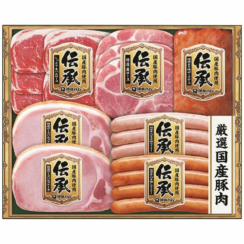 「伝承」は国産豚肉を原料とし、創業者「伊藤傳三」のハムづくりの想いを込めました。