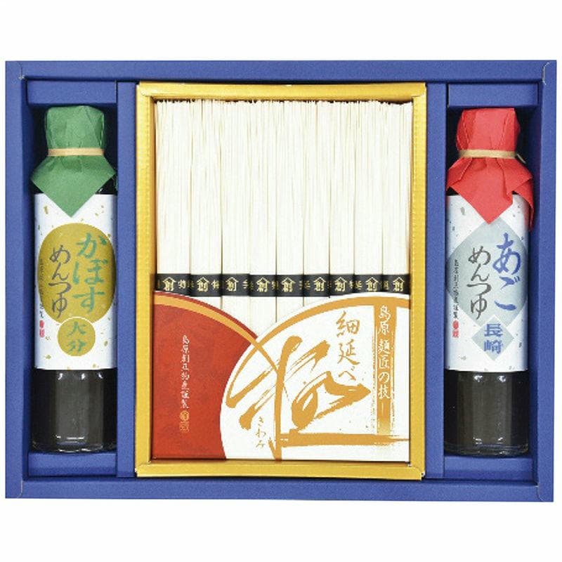 現品・内容・サイズ・材質: 手延細そうめん50g×9束・あごめんつゆ・かぼすめんつゆ各1本・各190ml