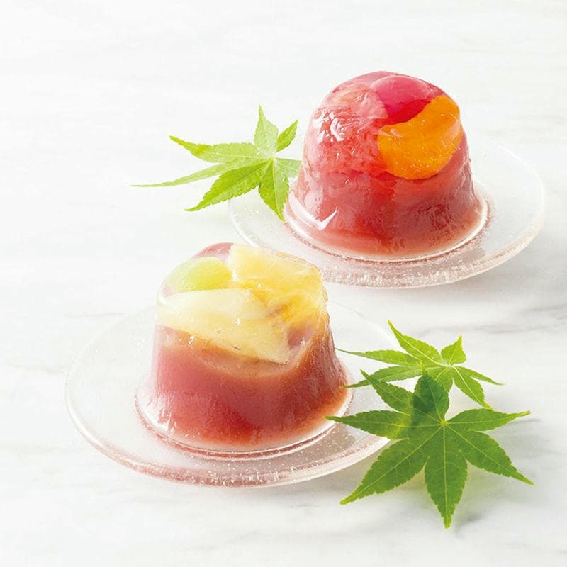 北海道産のしゅまり小豆と十勝小豆をブレンドした、なめらかな水ようかんに、3種の果実を合わせました。やさしいあんの風味と、果実の酸味や甘みが織り成す、涼やかな味わいをお届けします。