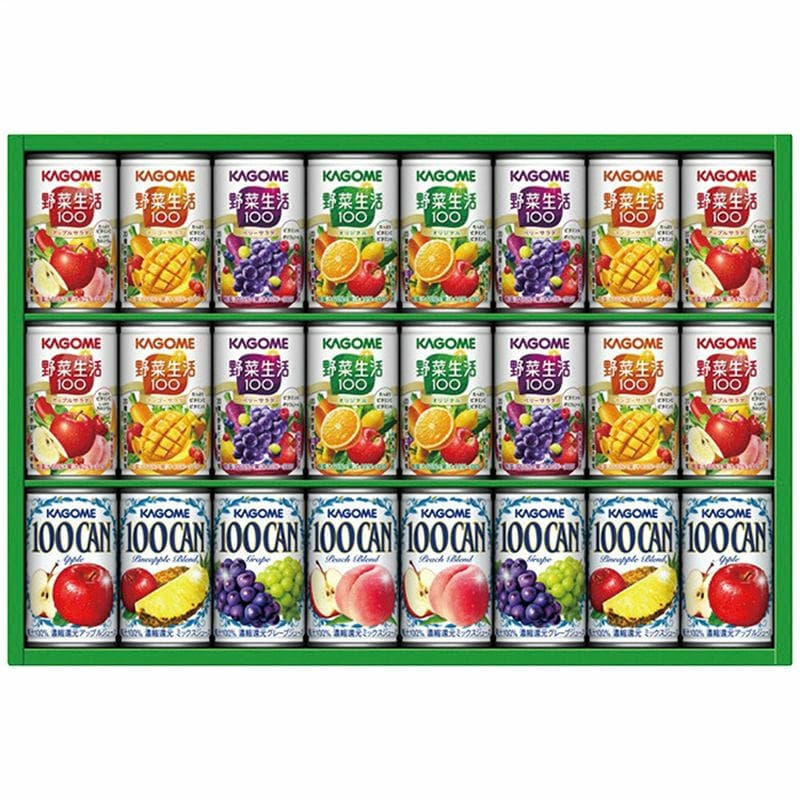 野菜&フルーツのおいしさが人気の「野菜生活100」と100%ジュースのベストセラー「KAGOME100CAN」の詰め合わせです。