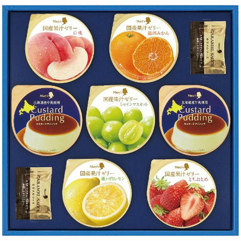 現品・内容・サイズ・材質: 国産果汁ゼリー(白桃・温州みかん・シャインマスカット・瀬戸内レモン・とちおとめ各1個)・北海道カスタードプティング(カラメルソース付)2個