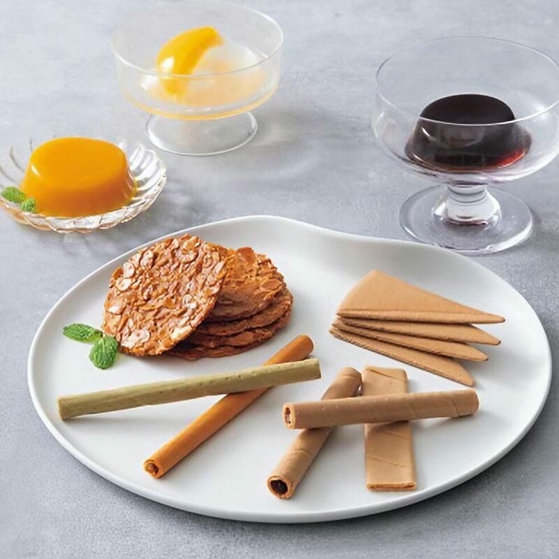 明治10年創業、本高砂屋の代表銘菓「エコルセ」や「マンデルチーゲル」に、限定の「バトンショコラ」、さらに果汁感たっぷりのゼリー2種を詰め合わせた、贅沢なアソートギフトです。