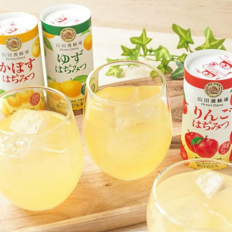 山田養蜂場のはちみつと国産の果物、ゆず、りんご、かぼすを使って風味豊かなドリンクに仕上げました。人工甘味料、香料、着色料不使用なので後味すっきりで暑い夏にぴったり!