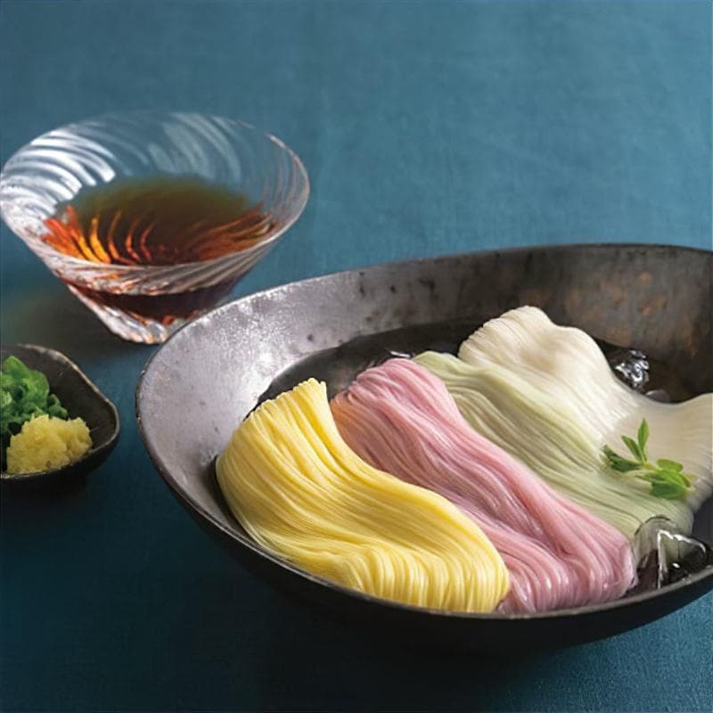 藩州地方の名品のそうめん「揖保乃糸」の色彩・風味豊かなギフトセット。
