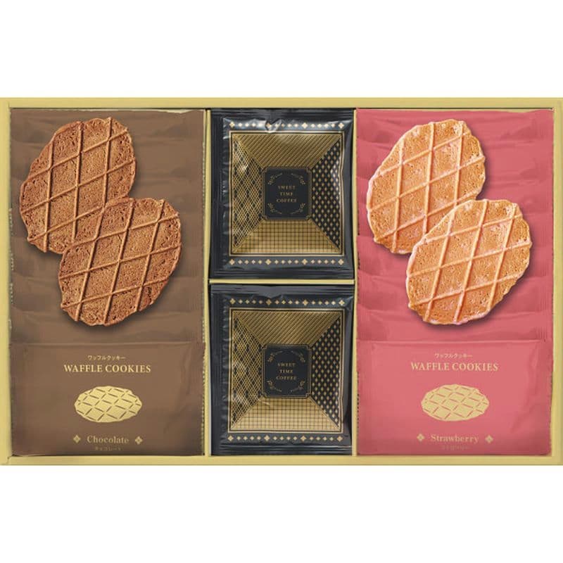 ワッフルクッキー(チョコ・いちご×各8)、ドリップコーヒー8g×8※商品の特性上、衝撃によって菓子が割れることがございます。