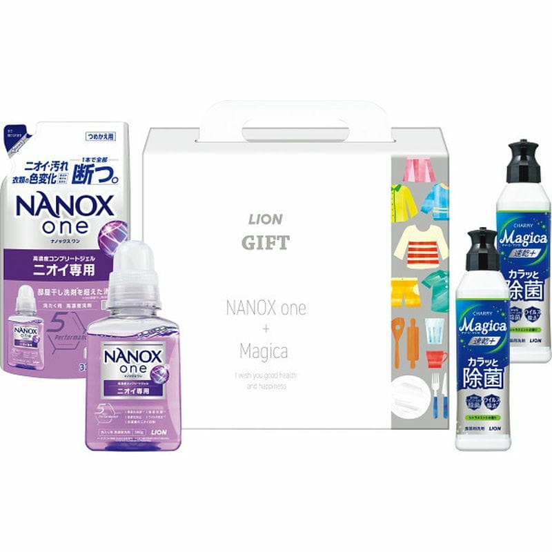 ナノックスワンニオイ専用本体380g・同詰替用320g×各1、チャーミーマジカ速乾+カラッと除菌(シトラスミント)220g×2