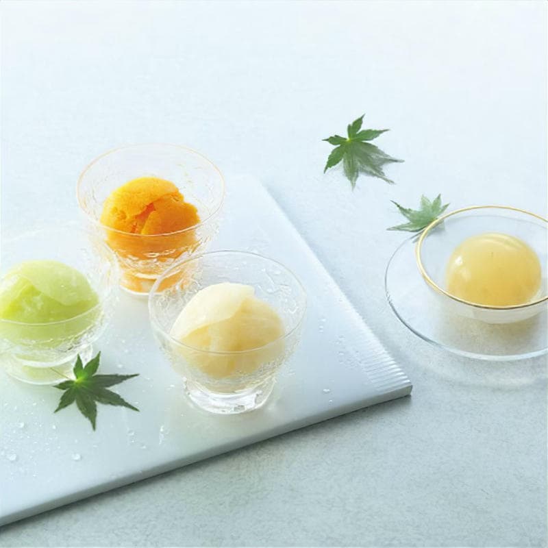 冷やして「ぜりぃ」、凍らせて「しゃーべっと」として、二通りの味わいをお楽しみいただけます。
