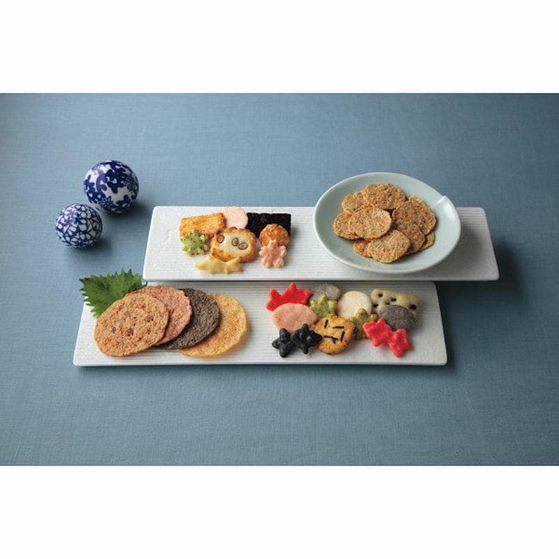 海の恵みをたっぷりと閉じ込めた贅沢な海鮮せんべいの詰め合わせです。豊かな風味と濃厚な旨みを持つ「海老」と「帆立」、噛むほど旨味が広がる「いか」や「たこ」などの海の幸が楽しめます。また、国産米100%を使用し、夏の風物詩である金魚を模した可愛らしいひと口米菓も。夏の風情が楽しめる見た目にもおしゃれな米菓は、お中元やお世話になった方へのご挨拶の品におすすめです。