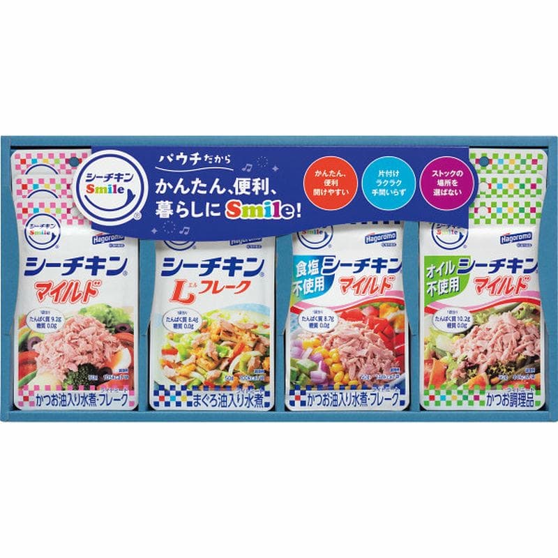 シーチキンSmileマイルド50g×3、シーチキンSmileLフレーク50g×2、シーチキンSmile食塩不使用マイルド50g×2、シーチキンSmileオイル不使用マイルド50g×3