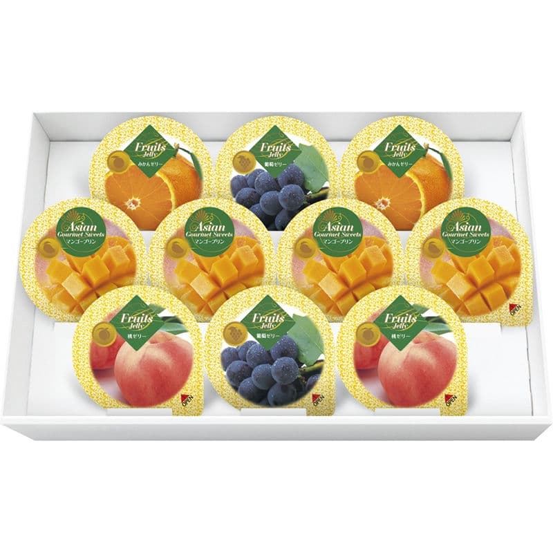 【セット内容】マンゴープリン(52g)×4、ゼリー(みかん・葡萄・桃)(各52g)×各2