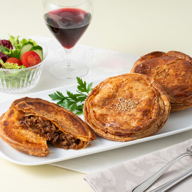 玉城豚や大山どりをフランスから取り寄せた生地粉を使って職人たちが仕上げ焼き上げました。牛、豚、鶏、それぞれの旨みを特長よく上手に引き出した一品を簡単にお楽しみいただけます。