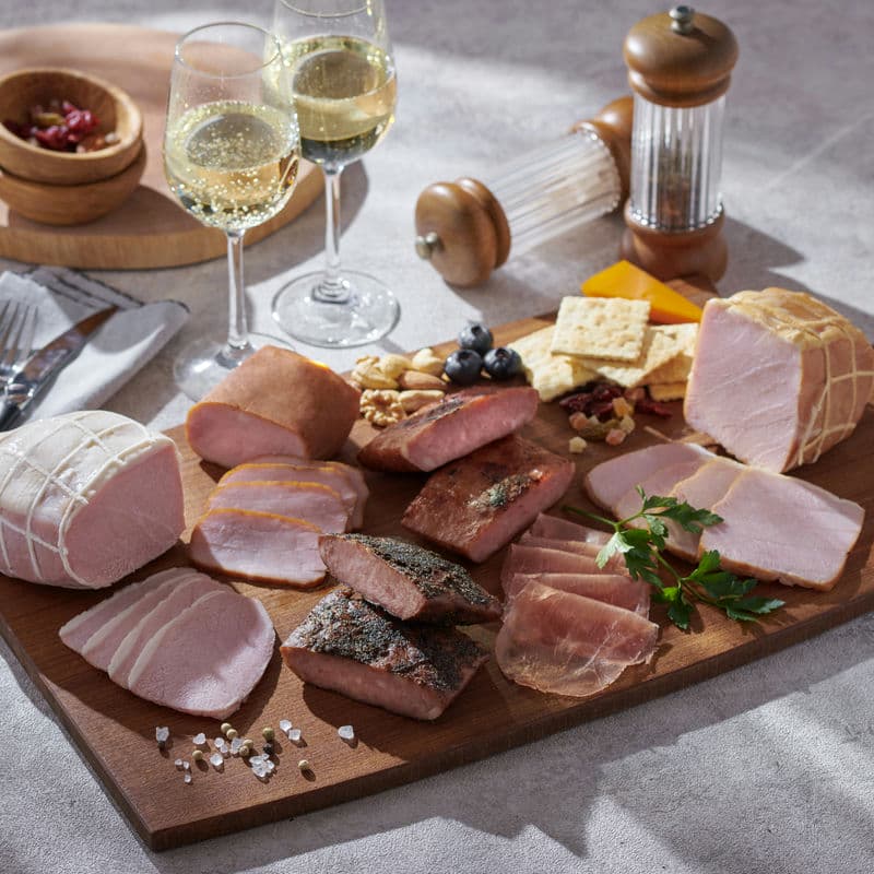商品内容:上級ロースハム340g、上級ホワイトロースハム340g、ロース生ハム27g、スモークハム152g、パストラミローフ128g、あらびきミートローフ128g