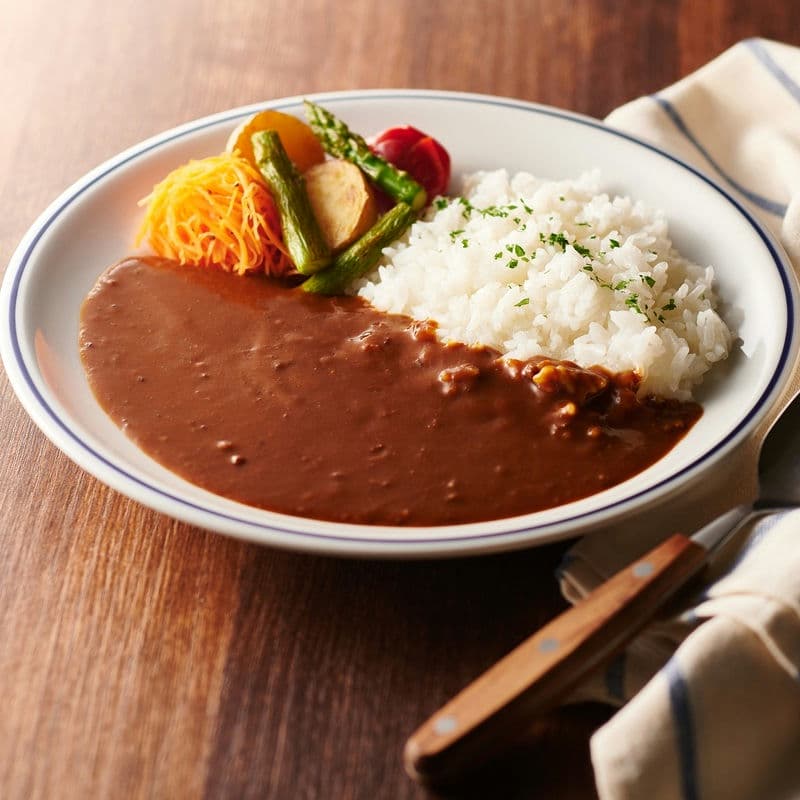 数種類のスパイスとフルーツを煮詰めてつくったチャツネの旨味やトマト・ヨーグルトの酸味を加えととのえたソースで牛肉と野菜をとろけるまで煮込みました。